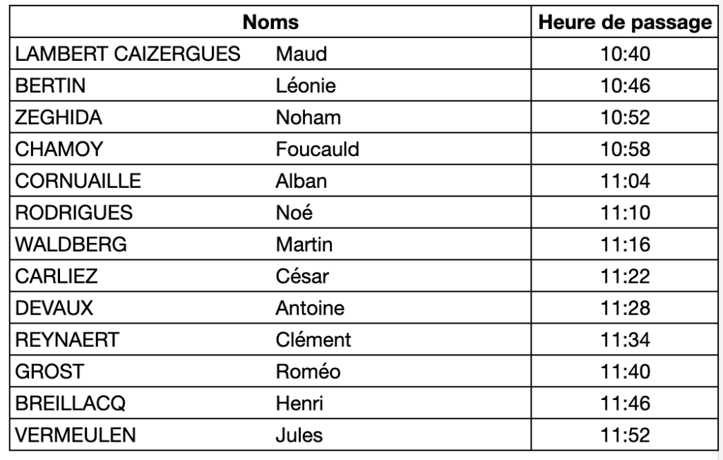 Horaire de passage : examen oral du mercredi 4 février